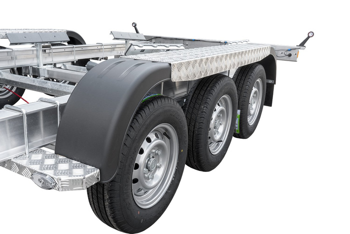L’équipement de la remorque comprend une butée d’étrave avec un treuil, 4 rouleaux inférieurs et 6 supports latéraux. La remorque dispose d’une roue d’jockey automatique, et d’une béquille en option, qui facilite les manœuvres et le stationnement de la remorque déconnectée de la voiture.